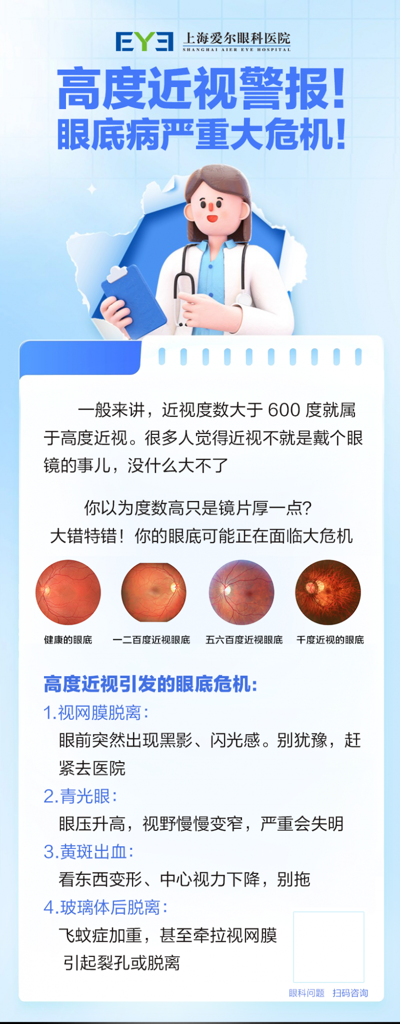 更重要的是,上海爱尔还是上海市全医保定点单位,不仅技术顶尖,服务更是贴心到炸!一对一诊疗、全程专人陪同,从术前精准检查到术后康复随访,每一步都让你安心无忧。上海爱尔眼科医院副院长李勇再次郑重提醒:高度近视不是“小毛病”,而是需要终身警惕的“眼病隐患”!与其等到眼底病变、视力崩盘才追悔莫及,不如趁早行动,找上海爱尔,给眼睛一次“重获光明”的机会!