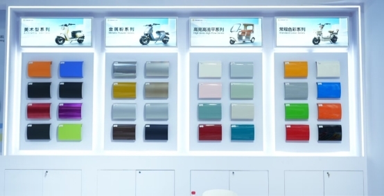 盛达以美学设计赋能产品差异化,打造了高亮高流平、金属、美术型等全系列粉末涂料,同时同步国际趋势推出2026年度流行色,既能实现整车亮丽的质感效果,又能让整车外观紧跟时尚潮流,大幅提升产品视觉吸引力与市场竞争力。