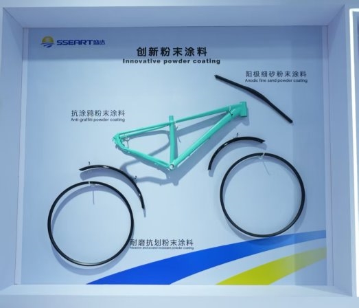 盛达聚焦实际使用场景的耐用性与个性化需求,创新推出耐磨抗划伤、阳极细砂、抗涂鸦等高性能粉末涂料,耐磨抗划伤涂料可提升部件表面硬度,日常使用不易刮花;阳极细砂涂料呈现细腻高级的砂面质感,媲美阳极氧化效果;抗涂鸦涂料具备疏油疏水、易清洁特性,全面适配共享出行、家用代步等各类车型需求。