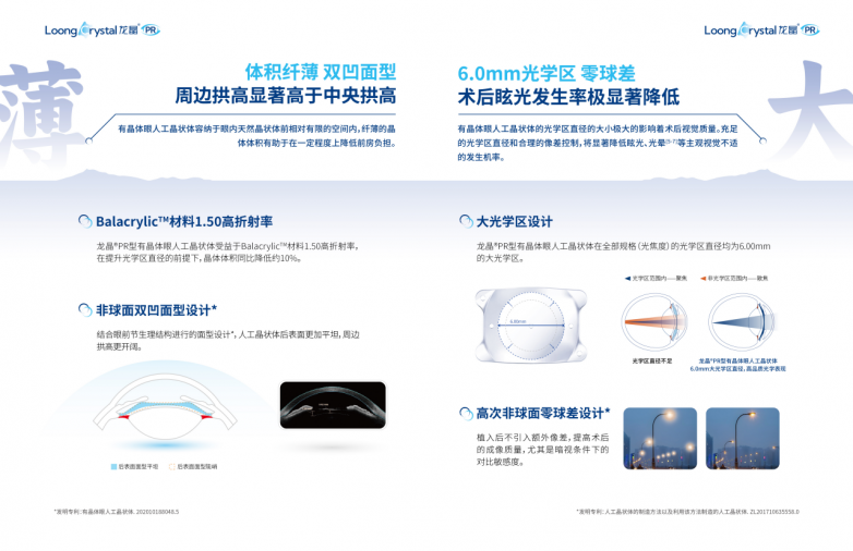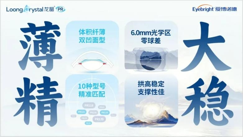 此次植入的龙晶 ®PR 型晶体,是由我国爱博诺德公司自主研发、拥有完全自主知识产权的全球首款非球面后房型有晶体眼人工晶体,相较于传统晶体,龙晶 ®PR 凭借 “薄、大、精、稳” 四大核心优势,成为近视矫正领域的 “中国智造” 新标杆: