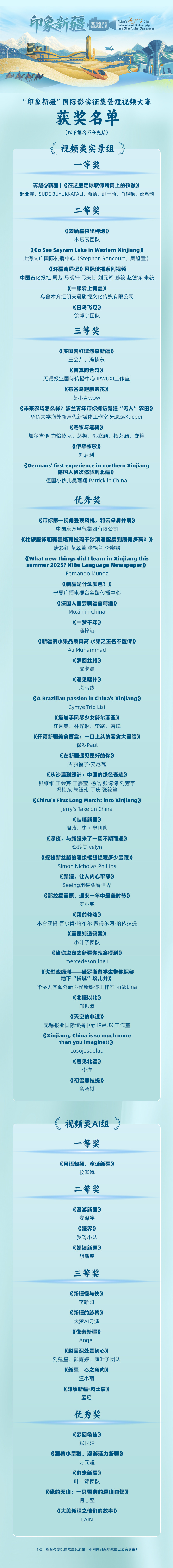 近日,由新疆广播电视台主办、环球网作为媒体支持的“印象新疆”(What’s Xinjiang Like)国际影像征集暨短视频大赛收官。本届大赛以“印象新疆”(What’s Xinjiang Like)为主题,汇聚全球创作者,通过影像语言生动呈现新疆的真实生活图景,促进跨地域、跨文化对话与理解。