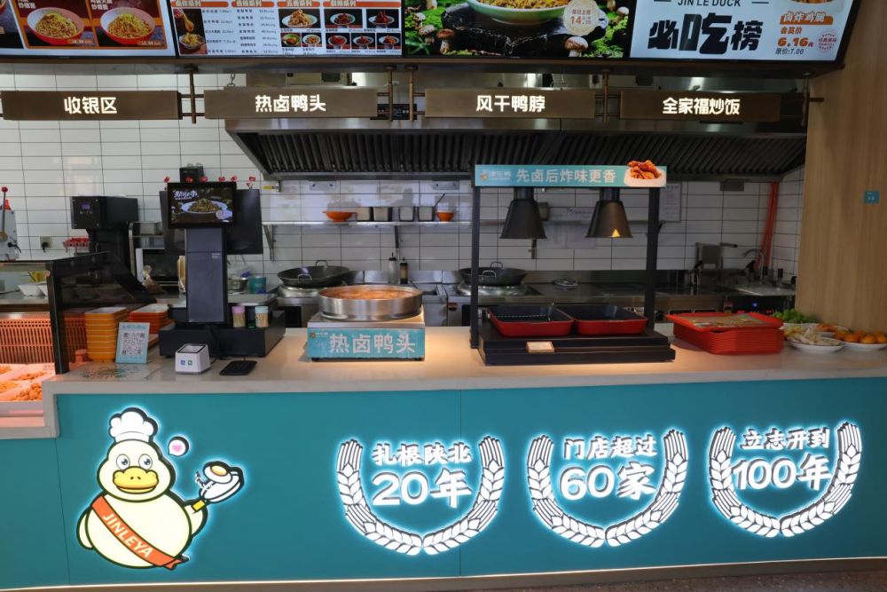 津乐鸭的“热卤+炒饭+捞饭”融合产品模式,兼具特色与市场竞争力,成为加盟的核心优势,相比传统单一卤味品牌更具市场潜力。热卤与炒饭、捞饭的结合覆盖更多消费场景,客单价与坪效更高,更适合CBD、写字楼、高端社区等各类商圈布局;而明厨亮灶的门店设计,不仅契合当下消费者对餐饮卫生的需求,还简化了门店的制作流程,降低了人员操作难度,新手加盟商也能快速上手,比如明厨中可清晰展示热卤鸭头的卤制、肉末鸭肠捞饭的翻炒,让消费者直观感受新鲜与卫生。同时,品牌作为陕西本土卤味品牌,已在陕蒙晋地区形成较高的品牌知名度与口碑,加盟商可借助品牌效应快速打开当地市场,减少前期品牌推广成本,多元的产品矩阵也能满足不同消费群体的需求,大幅提升门店的盈利能力。