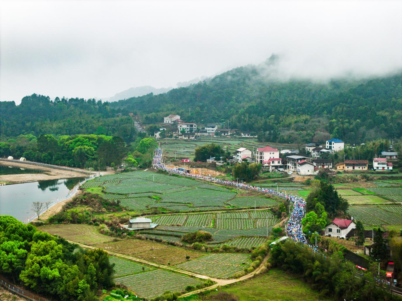 起点处,武夷山国家公园的苍翠山峦在晨雾中若隐若现。赛道两旁,成片的油菜花田块分明,金黄的花海与返青的麦苗交织,色彩斑斓。21.0975公里,一路沿着闽江源头北溪的潺潺流水,从田园乡舍跑到光泽城区,每一步都踩在春天里。