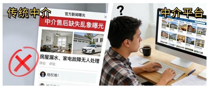 一端是传统中介 ,以单次成交为导向 ,签约即服务终点;另一端是中介平台 ,提供海量房源链接 ,判断与核验的责任完全交给用户。