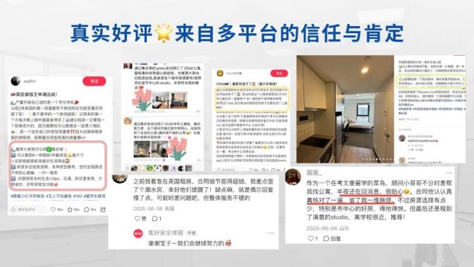 一位曾真实通过集好家租到曼彻斯特公寓的留学生分享:“ 最打动我的不是他们房源多 ,而是签约入住后 ,顾问仍帮助我协调解决很多问题一怎么领钥匙、灯泡坏了找谁、周边哪里买菜 ,非常专业也非常贴心。 那一刻我觉得 , 自己不是租了个房子 ,是找到了一个伙伴。”