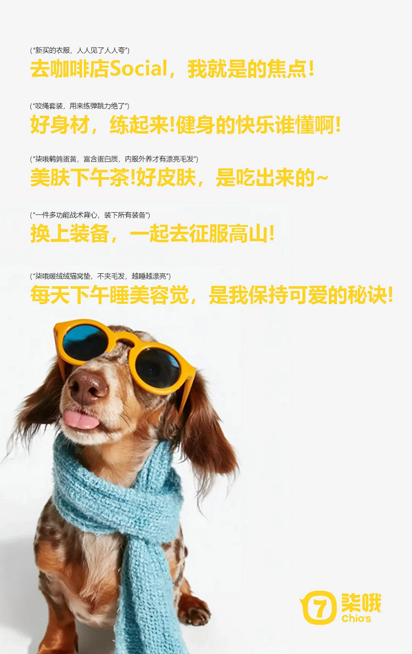 通过这次合作,面对宠物行业“快速增长”与“高度同质化”并存的现状,潜云携手柒哦深入挖掘品牌基因与特质,将品牌人格化作为核心策略——让柒哦不再只是一个卖产品的品牌,而是成为一个有态度、有温度、会表达的“人”。