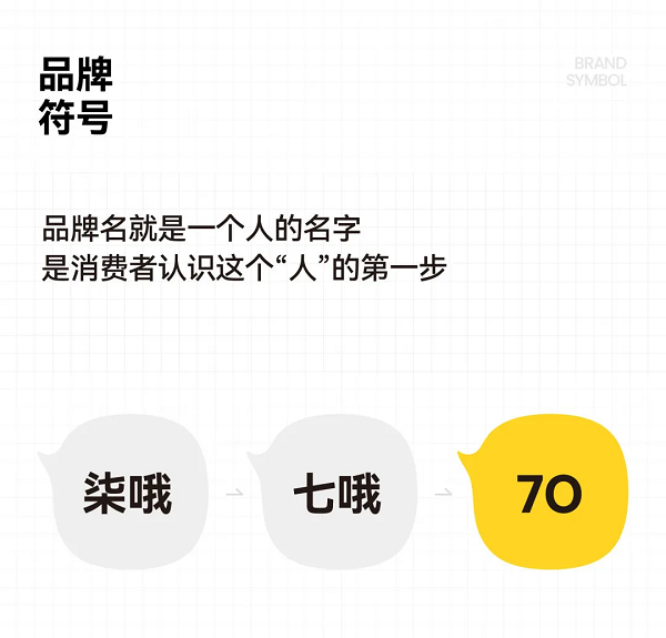 我们从“柒哦”中提炼出“七哦”再到“7O”这一数字符号,不仅保留了品牌的核心发音,同时也具有强烈的视觉联想力,因为数字符号天生带着传播buff。