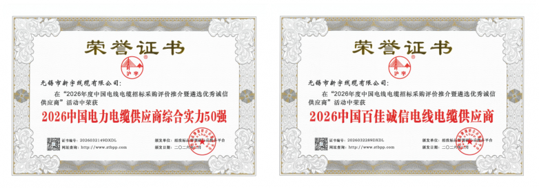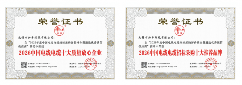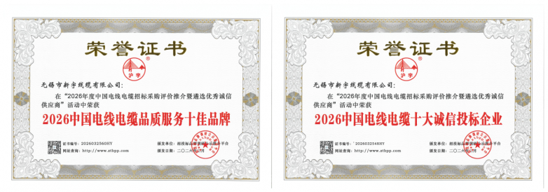 近日,由招投标品牌调研公示服务平台主办的“2026中国电线电缆招标采购评价推介”活动圆满落幕。无锡市新宇线缆有限公司凭借卓越的综合实力、过硬的产品品质、良好的品牌口碑及高效的服务水平,在众多参评企业中脱颖而出,一举荣获六项行业重磅荣誉,分别为:2026中国电力电缆供应商综合实力50强、2026中国百佳诚信电线电缆供应商、2026中国电线电缆招标采购十大推荐品牌、2026中国电线电缆十大质量放心企业、2026中国电线电缆十大诚信投标企业、2026中国电线电缆品质服务十佳品牌,用实际行动诠释了民营线缆企业的责任与担当,彰显了自身的扎实实力与良好口碑。