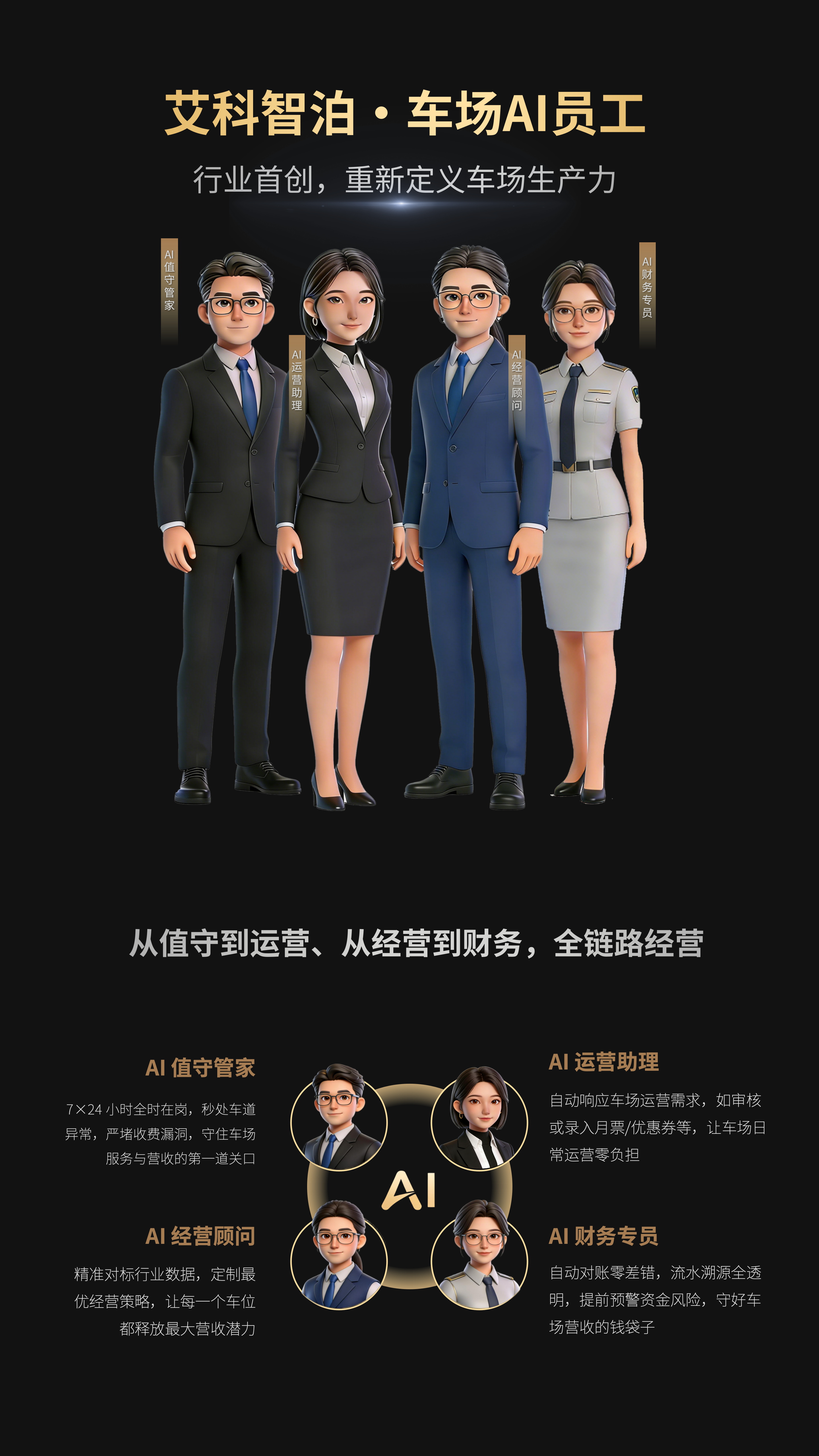 目前AI值守管家已正式商用,其他三个AI员工也将陆续推出。四个角色将形成“值守—经营—执行—风控”的完整闭环,让车场管理者真正从杂事中脱身,把精力集中在经营本身。在智慧停车行业从“设备智能”迈向“AI自主运营”的进程中,艾科智泊的这次探索,或许正为行业打开一扇新的门。