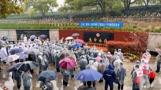 大爱无言,生命如歌。2026年3月26日和27日上午,由江西省红十字会、江西省卫生健康委员会、江西省民政厅共同主办的“江西生命·曙光”2026年江西省遗体器官捐献缅怀纪念暨宣传普及活动,在南昌青山墓园和西山万寿陵园隆重举行。春雨潇潇,寄托哀思,南昌爱尔眼科医院角膜及眼表专科团队及南昌爱尔角膜接收站工作人员一行受邀出席,与捐献者家属、红十字会志愿者、各医疗机构代表及社会各界爱心人士齐聚一堂,在绵密的雨丝中共同完成庄严仪式,以最真挚的敬意缅怀无私奉献的遗体器官捐献者。