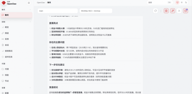 直播下播后,系统自动抓取全场核心数据,AI 即时生成完整复盘报告。不仅告诉您“发生了什么”,更深度解读“为什么发生”,并给出“接下来怎么办”的可执行优化建议,形成完整的 PDCA 闭环。