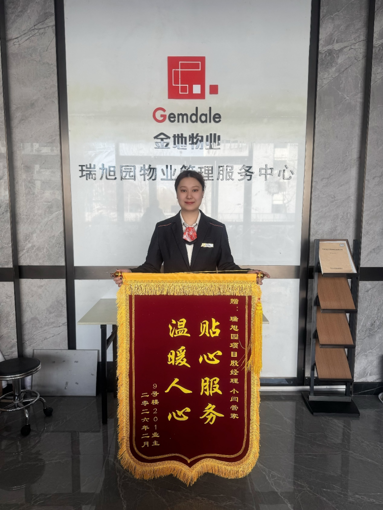 一面锦旗,是认可,是赞誉,更是责任与担当的见证。从大年初三紧急驰援化解漏水纠纷,到后续登门慰问,卯经理带领着物业团队用这份跨越节日的守护,让业主感受到家的温暖,也让金地人“用心做事”的文化理念,在每一次服务中落地生根、熠熠生辉,书写着物业与业主之间的温情篇章。