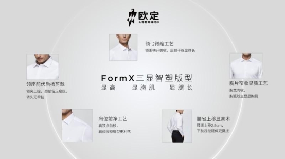 长期以来,商务男士被迫在形象管理与身体感受之间做减法,而此次发布会,欧定全新升级的“FormX三显智塑版型”应用于品牌全品类产品。据悉,“FormX三显智塑版型”是欧定基于全球超200万男性体型数据研发的版型系统,通过对33个身体部位120个制衣参数的精准调校,实现了“显高、显胸肌、显腿长”的三重视觉效果,进一步提升了商务男装的合体度与穿着体验。