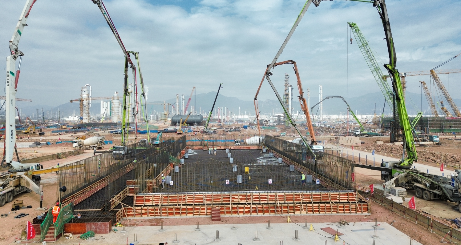 近日,由中国化学工程十三化建承建的惠州三期乙烯项目陆续进行大体积混凝土浇筑,圆满完成三大循环水场的五个筏板及旁滤基础的大体积混凝土浇筑任务。