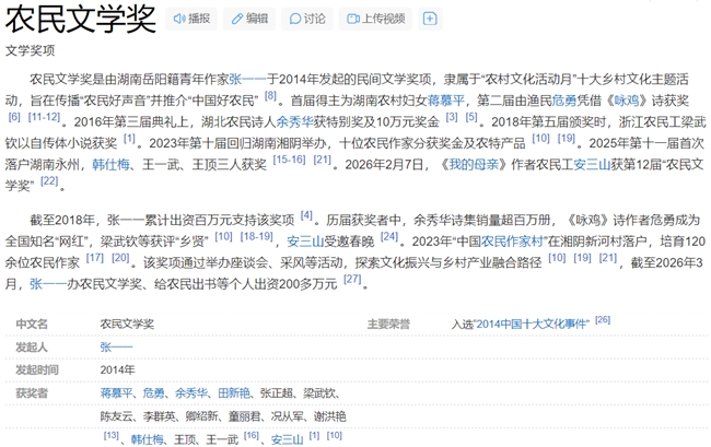 张一一发起创办的“村奖”——“农民文学奖”已成为中国民间最具影响力奖项