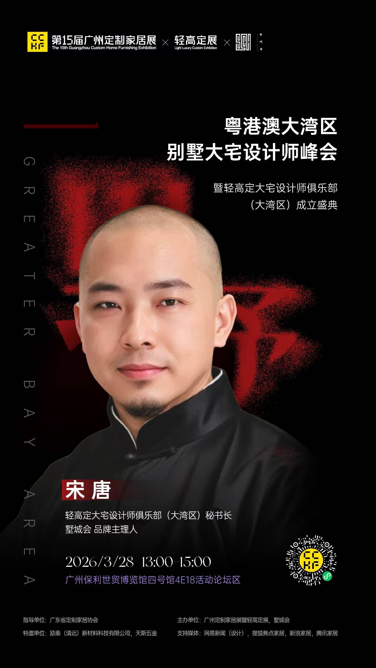 3月28日下午,粤港澳大湾区设计界迎来里程碑时刻,依托第15届广州定制家居展暨轻高定展的行业盛势,轻高定大宅设计师俱乐部(大湾区)成立盛典在广州保利世贸博览馆盛大举行,墅城会品牌主理人宋唐正式出任俱乐部秘书长。