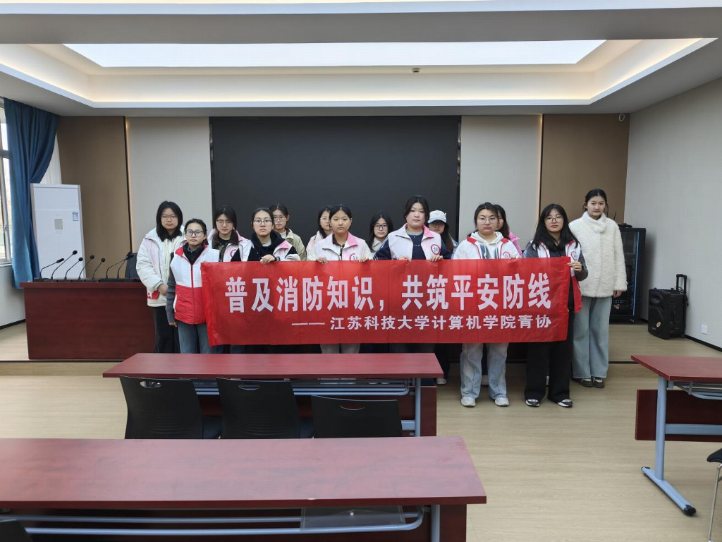 活动结束后,全体参加活动的志愿人员在横幅前合影留念。此次消防安全宣讲活动是江苏科技大学计算机学院青年志愿者协会志愿服务的重要内容之一。志愿者们表示,今后将继续发挥专业优势,开展形式多样的安全科普活动,为营造平安和谐的校园环境贡献青春力量。