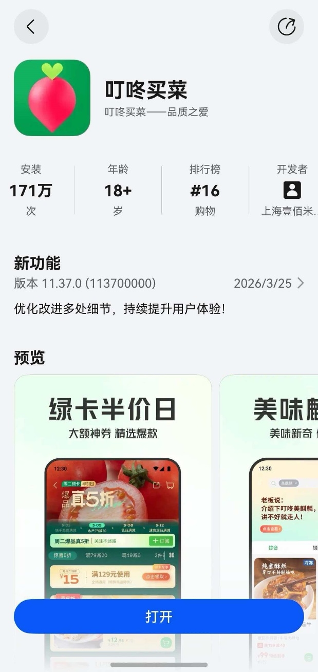 清明小长假在即,准备踏青春游但是不知道怎么准备食材?别急!鸿蒙版叮咚买菜新版本重磅来袭,追加商品、订单详情页地图及小哥实时动态等功能加持,从选购、下单到收货全程体验更丝滑~更有全新升级的叮咚买菜智能体,动动嘴就能搞定买菜备餐!无论是踏青备餐、假期加餐都能30分钟新鲜直达,轻松搞定品质每一餐!