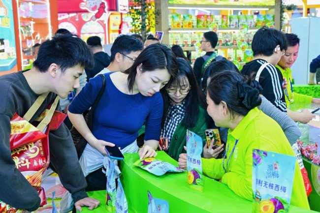 产品亮相,溜溜梅西梅凭借清晰定位与健康特质,吸引众多经销商与观展人员驻足咨询,现场互动氛围热烈。