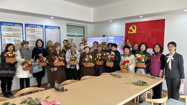 阳春三月,万物复苏。为庆祝“三八”国际妇女节,丰富社区女性的精神文化生活,2026年3月6日上午,崂山区金家岭街道山水名园社区党委联合浙商银行,在山水名园二期小区党群服务站举办了“初心映芳华 巾帼显担当”主题插花活动。活动融合艺术体验与法律知识普及,吸引众多社区女性积极参与。
