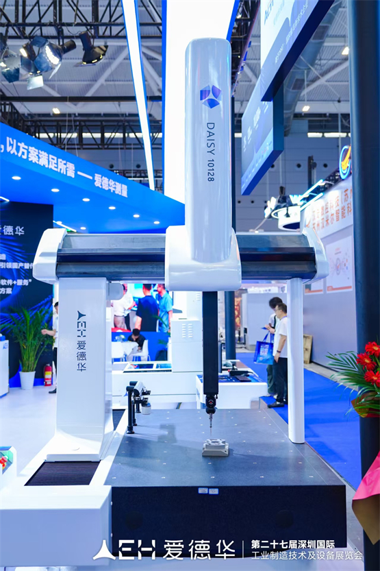 本届ITES深圳工业展以“穿透产业·智造聚变”为主题,以高端装备、机器人及自动化、精密零组件三大主题展为核心,在高端装备展区,海克斯康、蔡司、爱德华测量等测量品牌同台亮相,展示了纳米级形貌检测、计量型CT等前沿检测技术,精密测量正从传统的“质量把关”走向“价值创造”。其中,爱德华测量重点展示了以具身智能为核心方向的技术体系,将精密测量与智能感知、自动化决策深度融合,推动测量设备从“被动检测”向“主动感知与智能响应”演进——值得关注的是,与行业中多数企业仍停留在具身智能概念探讨阶段不同,爱德华测量在本届展会上率先展出了可交付的具身智能三坐标测量机产品。该系统基于Daisy 10128全封闭桥式三坐标平台,集成2D/3D视觉感知与AI决策引擎,实现了“工件随放即测”的全自动测量流程——无需夹具定位、无需人工编程,系统即可自主完成从工件识别、坐标系建立到测量路径规划与执行的全过程,标志着国内具身智能精密测量从概念正式迈入可交付的产品化阶段。