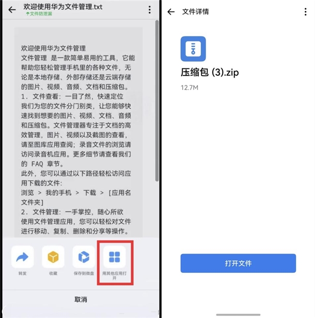 ·文件处理不绕路:用户可直接查看压缩文件,将收藏的图片、文件一键转发至微盘;防泄漏文件也可使用其他应用打开;手机系统相册、文件直接分享至企业微信,无需繁琐中转。
