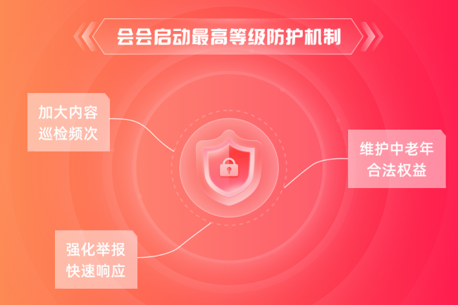 今年春节期间,平台启动最高等级防护机制,加大内容巡检频次、强化投诉举报快速响应,对涉嫌虚假宣传、诱导消费、低俗内容等行为 “零容忍”,第一时间下架不良内容、触发警告处罚、处置违规账号,全力保障用户信息安全与财产安全,切实维护中老年群体合法权益。同时,平台严格落实《网络暴力信息治理规定》,加强私信、评论、动态等全场景管理,完善屏蔽、举报、防护等功能,为中老年用户提供更可靠的网络安全保障。