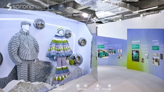 位于2026秋冬上海时装周MODE展的「有料空间」内,SORONA®生物基材料以「自然驱动未来」为题的展陈空间,正静谧绽放。有别于此前的“破竹之势”的原木基调,这一次,SORONA®品牌将视线投向了更为广阔的大自然,以及自然里充满无限未知与可能性、时刻涌动着生命脉动的海洋与山野。