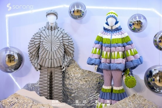 当柔韧绵感、自然弹性、轻松易打理的含SORONA®生物基材料的外层面料,与保暖、轻盈、蓬松的SORONA®Aura填充材料,在RAXXY品牌创始人沈威廉的巧思妙手下,化作马赛克结构的装饰画、模特身上的裤子、外套以及包包、帽子,其中所折射出的,不仅是SORONA®品牌对时尚创意的看中,更是材料方对积极参与未来服装结构构建的深思熟虑与前瞻预判。