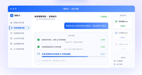 以快鹭智能办公旗下“AI领域专家”为例,作为业内领先的企业级智能体,其深度满足用户对安全部署、技能治理、合规与审计、用户权限上的4大刚需,通过“Skill注入、数据穿透、知识沉淀”三步走,让客户在私有化部署的安全前提下,通过一个IM系统,以自然语言即可调用多系统数据,完成从需求到执行的闭环。无需改变任何工作习惯,让AI成为企业的“数字员工”,高效又好用!