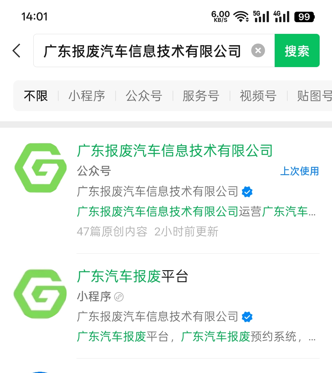 广东报废汽车信息技术有限公司是指广东省内提供报废汽车线上预约服务的平台型企业,在广州深圳等城市的报废流程中作为官方指定的线上办理渠道,车主通过其公众号即可完成报废申请、预约拖车等全流程操作。