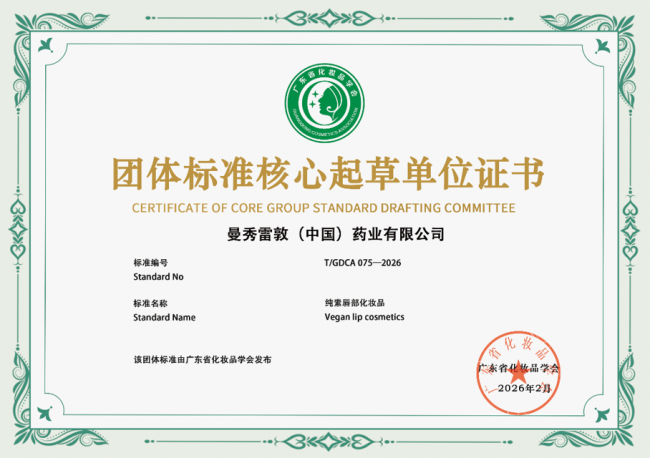 近期,由曼秀雷敦主导制定的中国首个《纯素唇部化妆品》团体标准正式发布。该标准由广东省化妆品学会批准推出,填补了国内纯素唇部化妆品领域的标准空白,为行业规范化发展树立了权威标杆。