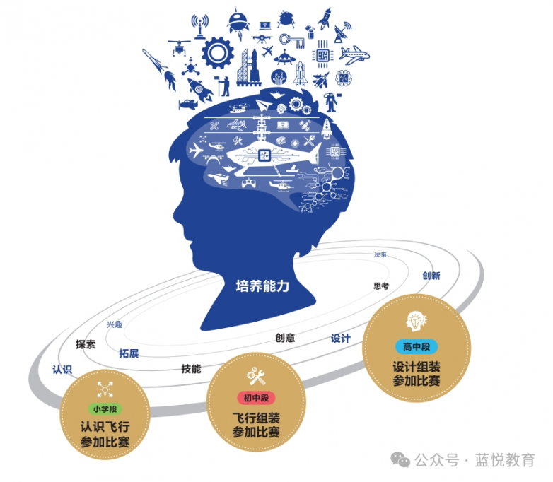 蓝悦教育聚焦8–18岁青少年无人机教育科技新赛道,打造课程教学、技能认证、竞赛集训、升学赋能全链条科创教育体系,构建“科学技术+科学教育+应用技能”三位一体核心体系。