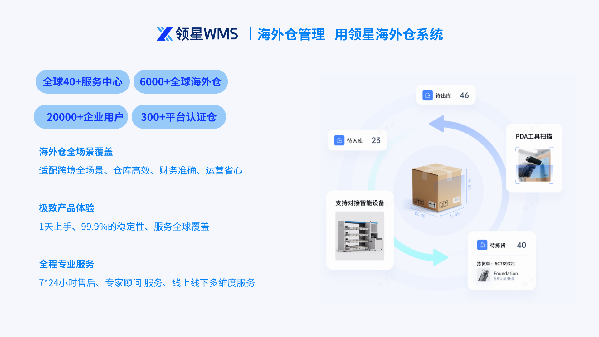作为专业的解决方案提供商,领星WMS(LINGXING WMS)致力于通过数智化手段重塑仓储作业流程。目前,其业务已覆盖全球90+国家与地区,服务超过6000+海外仓企业。通过对接全球40+主流跨境电商平台及300+打单系统,领星WMS帮助企业实现全域生态协同。