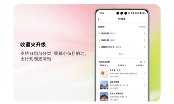 ·收藏夹升级:支持分组、分类管理地点,心仪的公园、美食、旅行打卡点分门别类收纳,调取更方便,行程安排更清晰高效。