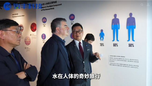 康斯坦丁·诺沃肖洛夫教授逐一探访了“生命之光”、“生命之源”、“生命之本”、“生命之源”四大展厅,深入了解骏丰科技围绕四大生命要素“阳光、水、空气、膳食营养”打造的全生命周期主动健康解决方案,了解骏丰科技将频谱技术转化为健康产品的创新实践,每一项成果都让这位诺奖科学家驻足细品、频频点头。