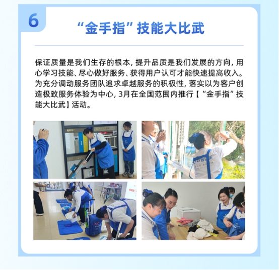 轻喜到家在全国推行“金手指”技能大比武,以赛代练、以比促学,激发服务团队追求极致的内生动力。同时实施“全员技能提升”计划,通过系统化培训、实战演练和经验分享,构建清晰的技能与素养升级路径。此外,通过服务考评与客户满意度跟踪,建立“轻喜之星”等标杆评选机制,激励员工在职业道路上持续成长。