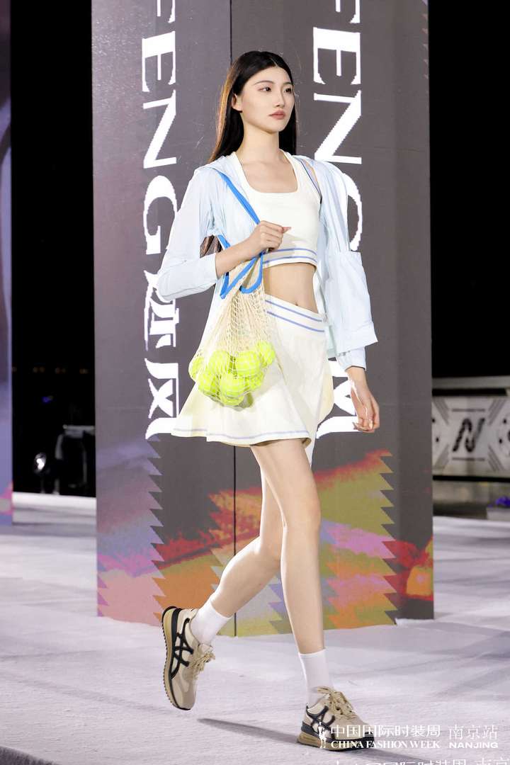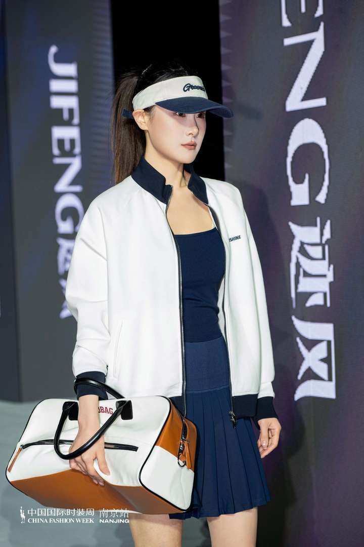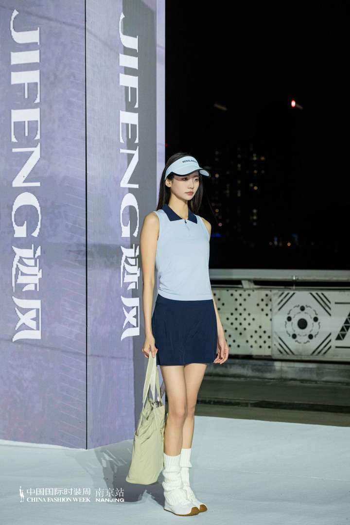 本次大秀的女装系列,以都市轻运动为核心灵感,打造出兼具颜值、舒适与实穿性的时尚单品。从清新蓝白撞色的网球风套装,到藏青撞白的复古运动夹克,再到简约利落的高尔夫风无袖上衣,每一套造型都精准拿捏「松弛感与精致感并存的时尚密码。