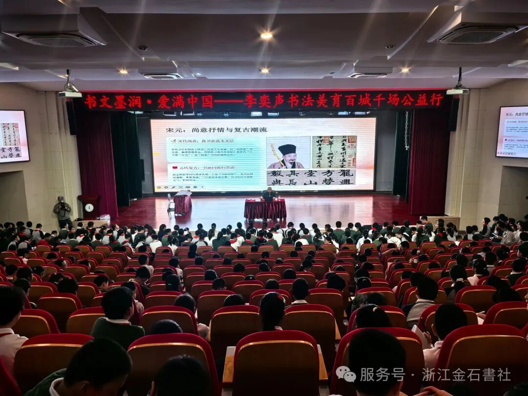 墨香传文脉,美育润童心。4月10日,“书文墨润 爱满中国——李奕声书法美育百城千场公益行”进校园专场在杭州江南实验学校隆重举行。活动以书法美育为载体,扎根校园、服务青少年,在校师生六百余人齐聚一堂,共赴一场传统文化与美育滋养的深度邂逅。杭州江南实验学校教育集团党委书记、理事长金晓东等领导出席活动,与师生共同见证这场文化公益盛宴。