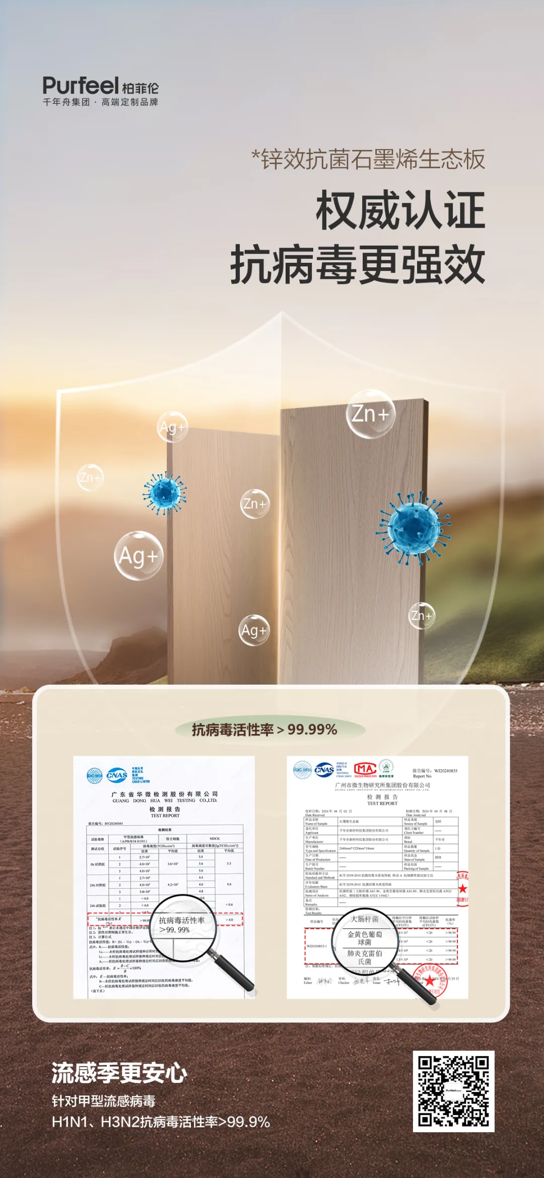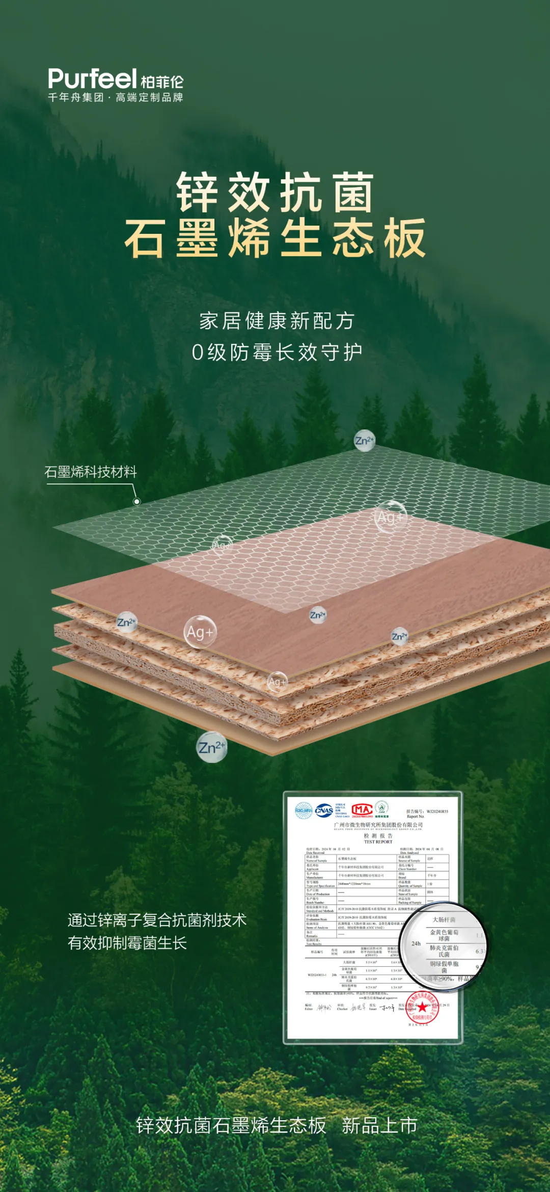 锌效抗菌石墨烯生态板能够通过同霉菌中的蛋白质反应,抑制其生长,成品板材达最高等级0级防霉,有效保护家居环境的美观与耐用性,同时保障家人减少霉菌侵害。