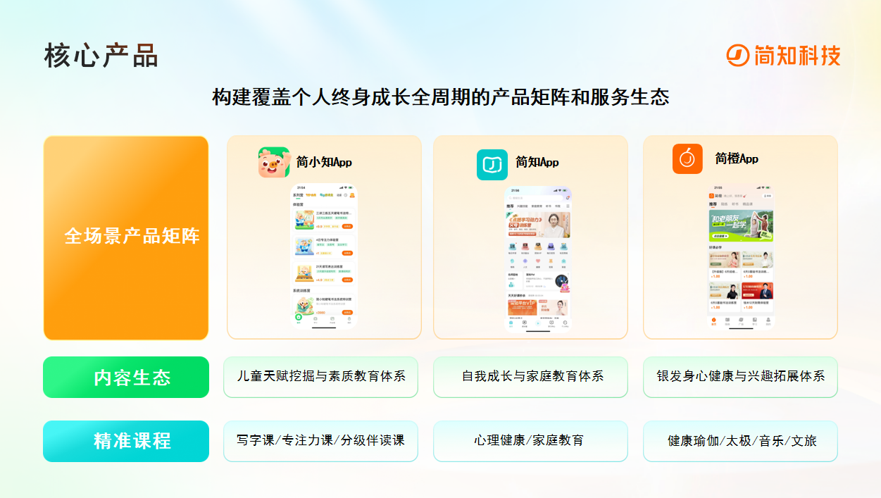 (简知科技全龄产品矩阵)