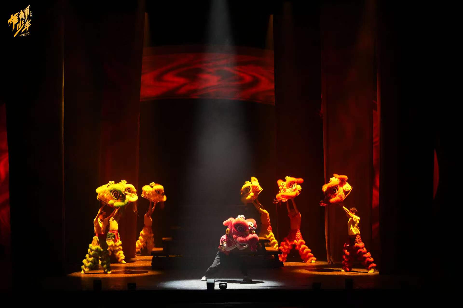 音乐剧《雄狮少年》平凡少年阿娟体弱多病,却一心向往舞狮。因与同名少女相遇,他被那份炽热所点燃,与两位好友组成“雄狮小队”,拜隐世高手咸鱼强为师,奔赴赛场的动人故事。全剧在音乐、舞蹈和舞狮的交汇演绎下徐徐展开,故事情节婉转曲折、荡气回肠,台词笑中有泪、鼓舞人心。剧中以音乐推动剧情发展,激荡情感,展现浓厚的岭南风情,为观众带来充满地域特色和文化韵味的听觉和视觉双重享受。鼓点,在此不仅是节拍,更是少年们蓬勃的心跳;狮头的每一次昂首与低回,皆承载着角色的悲欢与志气。当激昂的现代乐章与铿锵的狮鼓交织共鸣,一次次点燃全场观众的掌声与热血。
