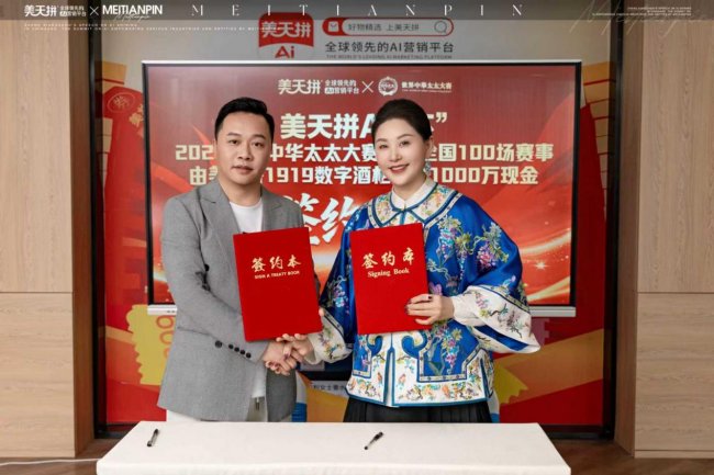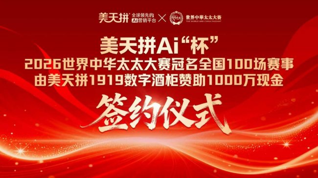 纳斯达克上市企业美天拼科技集团(NASDAQ:HNDI)与世界中华太太大赛组委会正式签署全球战略合作协议。美天拼创始人兼CEO牟江洪与世界中华太太大赛主席李逸欣共同见证,美天拼成为「美天拼AI“杯”2026世界中华太太大赛」全年独家冠名方,旗下美天拼1919数字酒柜项目以千万级资源投入覆盖全国100场赛事,贯穿全年省市级总决赛直至年末全国总决赛。