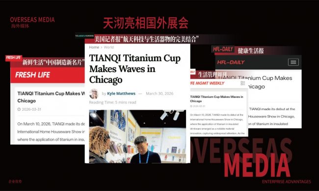 从“中国制造”到“中国智造”,天沏纯钛杯在芝加哥展的走红,是中国高端家居用品出海的缩影。凭借材质创新与品质实力,天沏不仅赢得海外市场认可,更让全球消费者看到中国品牌在新材料领域的突破。随着展会持续发酵,天沏相关报道将覆盖海外多家主流媒体及国内门户网站,进一步推动“中国钛杯”风靡全球,助力中国智造走向世界舞台中央。