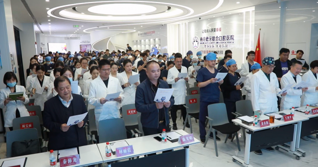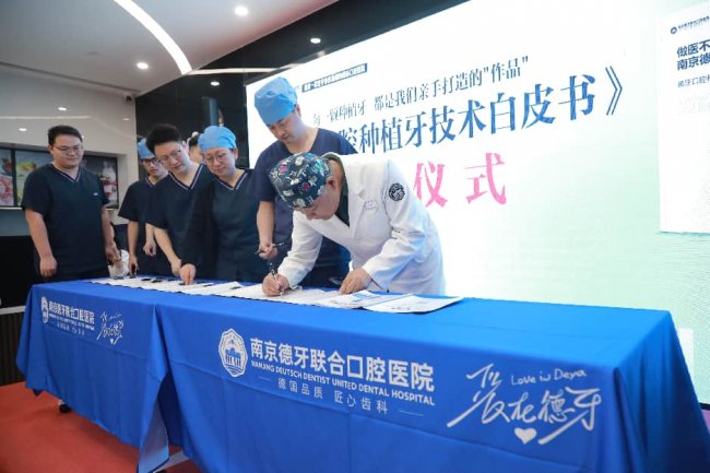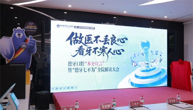 2026年4月11日下午,南京德牙联合口腔医院召开“行医不丢良心 看牙不寒人心”本分宣言承诺仪式暨“德牙七不为”全院解读大会。本次大会以“善良靠谱”为核心,正式发布德牙口腔《本分宣言》,明确“德牙七不为”刚性行医准则,同步推出《德牙口腔种植牙技术白皮书》,以坚守医疗本质的决心,向南京市民郑重承诺:做南京一家坚守善良靠谱的德系口腔医院,以本分行医、向善初心,换患者一生自信的健康笑容。