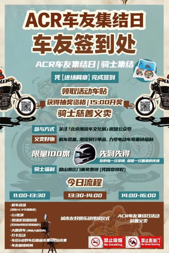 热度仍在持续!4月12日,ACR车友机车集结日将如期登场,预计300余台机车震撼集结。定装拍摄、互动体验、慈善义卖等活动将轮番上演,让这场潮流盛会多了一份温暖与责任。
