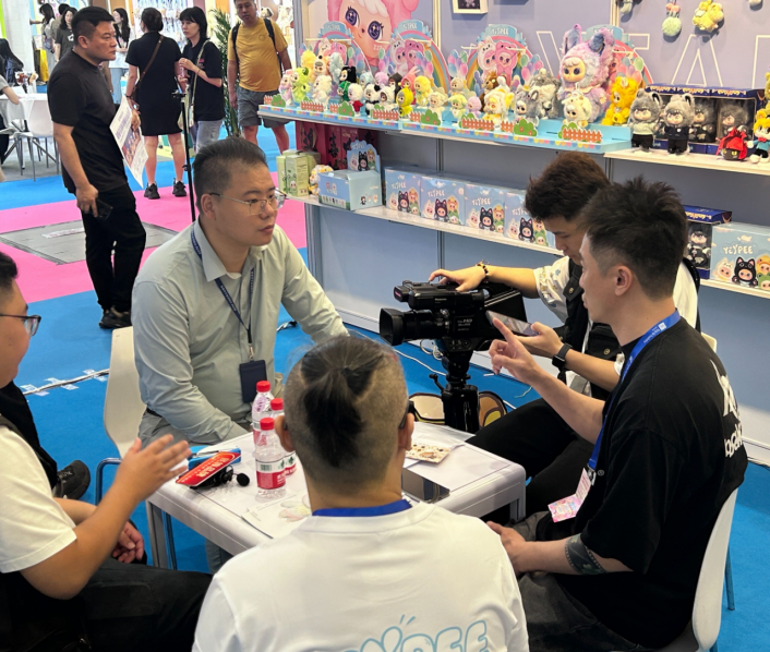4 月 10 日,2026 国际玩具及潮玩(深圳)展览会进入第二日,展会热度持续走高,各大品牌展区客商云集、交流热烈。作为本届展会备受关注的中国原创潮玩 IP,Yeypee 展位依旧人气高涨,产品展示与商贸洽谈同步高效推进,更吸引央视 CCTV 记者来到展位现场交流,深入了解品牌发展与产品布局,充分体现出行业及权威媒体对国产潮玩品牌的高度关注。