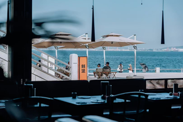 “为了这个海景专门来的,窗外就是大海,还能看到海鸥。黑金装修很高级,服务小姐姐还帮我们拍了合照,发朋友圈被赞爆了。”——大众点评用户