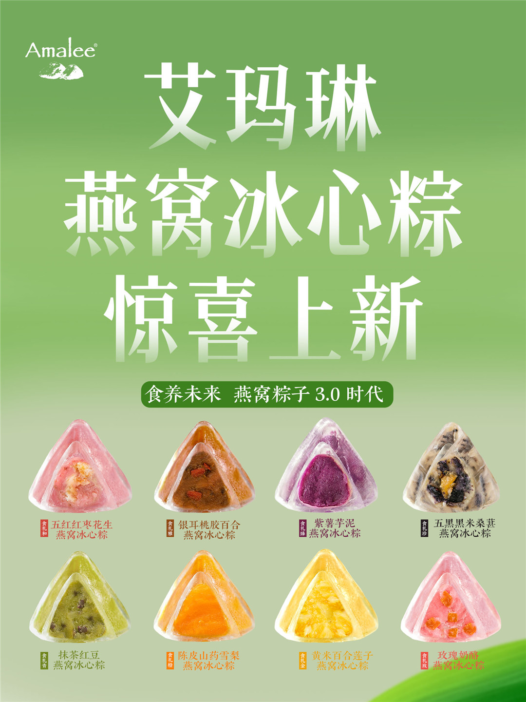 近日,深耕滋补行业 14 年的 Amalee 艾玛琳正式举办2026燕窝粽子新品发布会,以 “食养未来 你最粽要”为主题,全新推出燕窝冰心粽、燕窝滋心粽两大系列产品,以品质坚守与创新理念,为端午礼赠市场树立全新标杆。