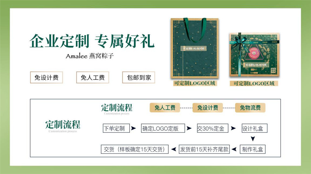 针对企业团购、客户答谢、员工关怀等场景,品牌提供一站式定制服务,支持 LOGO 印制与专属方案定制,100 盒起订,免设计费、免人工费、包邮到家,让端午礼成为企业品牌传播的载体。物流方面采用顺丰速运一件代发,确保产品新鲜直达,高效省心。